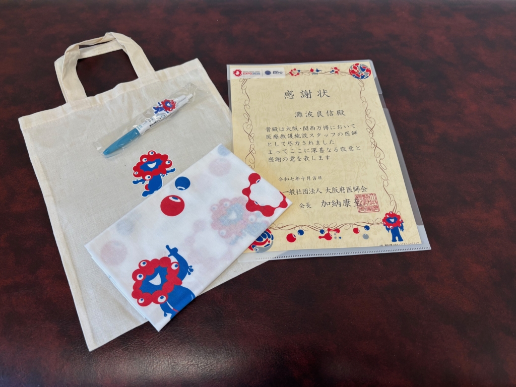 8月に関西万博の診療所に少しだけ関わらせていただいたご縁で、感謝状と記念品を頂きました。